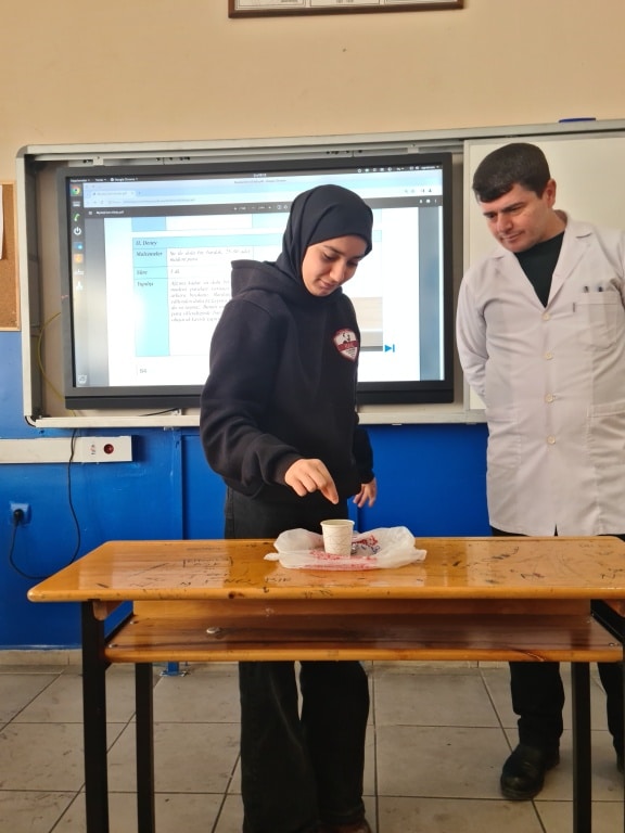 Hakkari Atatürk Anadolu Lisesin'de deney günleri. Biyoloji Öğretmenimiz Mehmet FİDANCAN öncülüğünde 9/D sınıfı öğrencileriyle birlikte Adezyon ve Kohezyon konusunu pekiştirmek amacıyla "taşmayan dolu su bardağı" deneyi yapıldı.
