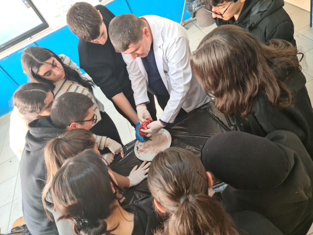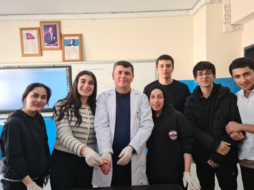 Hakkari Atatürk Anadolu Lisesi'nde deney günleri. Biyoloji Öğretmenimiz Mehmet FİDANCAN öncülüğünde 11/A sınıfı öğrencileriyle birlikte Dolaşım Sistemi ünitesinin pekiştirilmesi amacıyla "Kalbin Yapısının İncelenmesi" etkinliği başarılı bir şekilde yapıldı.
