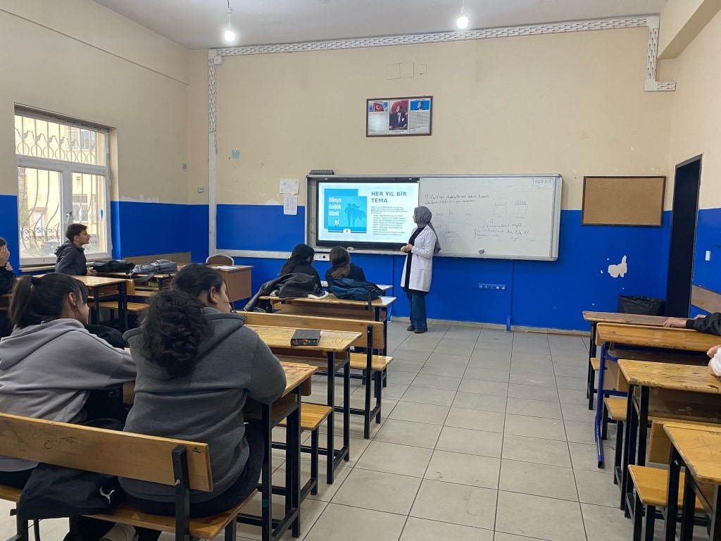 2024-2025 Eğitim Öğretim Yılı Okulumuzun İl Eylem Planı Doğrultusunda ve HEGEP Kapsamında 7 Nisan Sağlık Günü dolayısıyla 9/B sınıfında Sağlık Bilgisi dersinde DSÖ’nün 2025 yılı için belirlediği “Sağlıklı Başlangıçlar, Mutlu Yarınlar” teması Okul Hemşiremiz Sedanur BİTİK tarafından öğrencilerimize tanıtıldı.