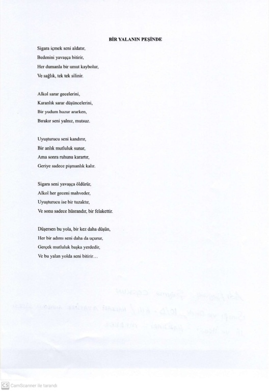 HEGEP kapsamında okulumuz https://snsg.yesilay.org.tr/ adresindeki YEŞİLAY'ın organize ettiği Öğrencilerin bağımlılık konularına duyarlılığını artırmak, yeteneklerini teşvik etmek ve başarılı bulunan eserleri ödüllendirmek amacıyla gerçekleştirilen Sağlıklı Nesil Sağlıklı Gelecek yarışmasına katılmıştır.